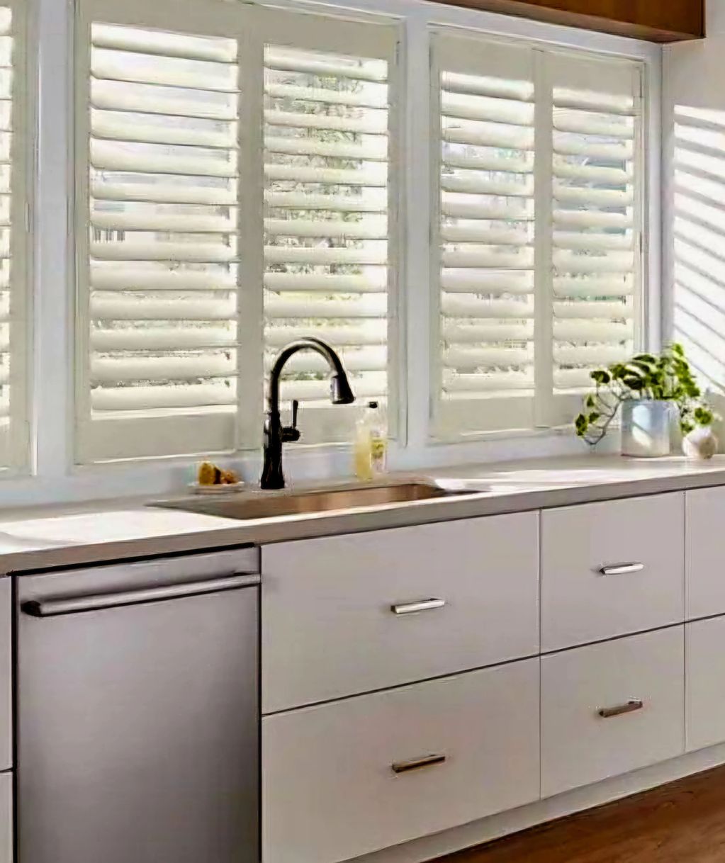 SHUTTERS: Custom shutters become a permanent fixture to your home and increase the shutters make a significant impact on teh look and feel of a room. Available in solid wood or composite mtera=ial, custom wood stains and paint colors. Composite shutters don't warp and provide a more affordable price point.